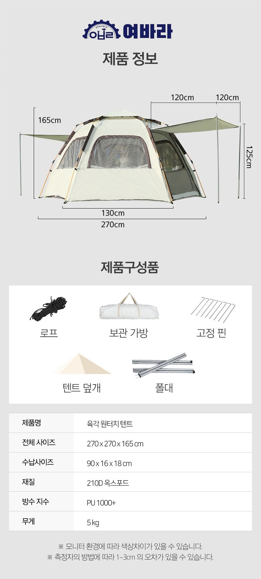 육각형 텐트 메쉬 대형 캠핑 가림막 원터치 낚시 그늘막 방수 차박 6-8인용 여바라